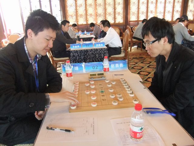 B组较量的比赛进程令人意外,当今棋坛象棋等级分第一的特级大师蒋川,在第3轮执后手被象棋大师江苏小将程鸣爆冷击败。前三轮夺得连胜的聂铁文下午第四轮依旧表现不俗,并与程鸣激战战和,目前聂铁文以三胜一和积7分继续位居B组榜首。御林军统帅、智运会快棋桂冠张强在击败台北队陈振国之后,并与蒋川战和一局,张强与程鸣同积6分。接下来第五轮中张强将执先手出战聂铁文,这局棋对于争夺该组头名很关键。