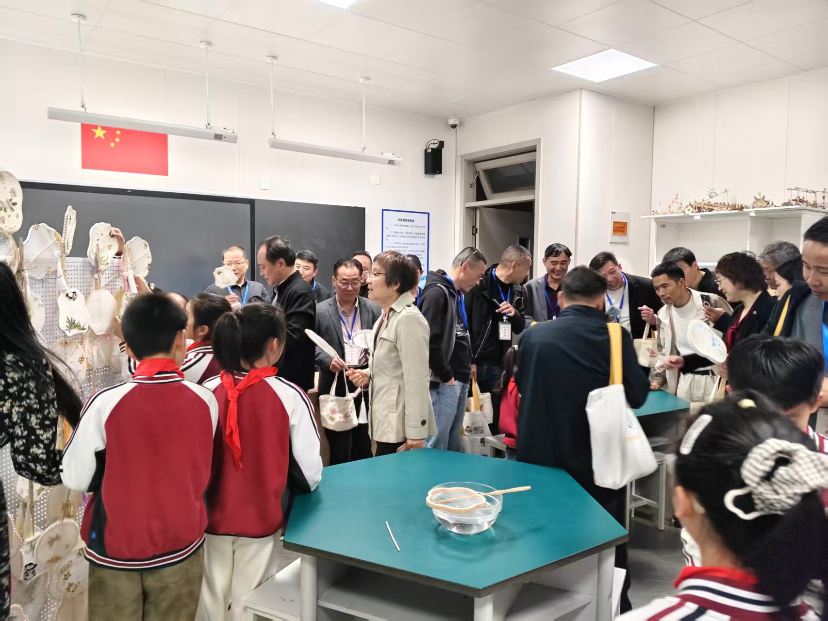 随后,全体人员一起跟随指引,感受校园文化的独特魅力,共赏特色育人成果。分别参观了智能科创馆、AI享动物园、AI精灵农场、蚕丝编织室、AI享棋室等特色阵地。嘉宾们对学校特色发展的成果表示了赞叹。