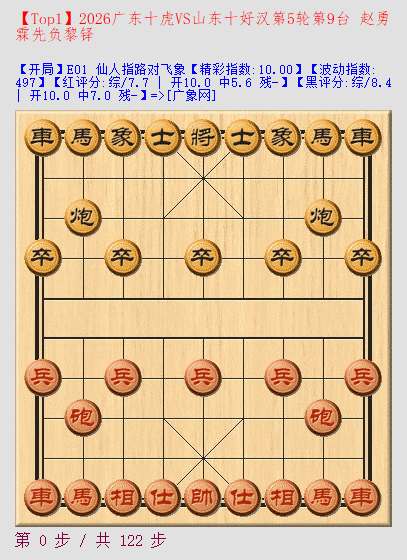 本次比赛对阵成绩及棋谱已收录进广象网数据库。附《广象网棋谱质量评估系统》精彩度最高分三局棋谱: